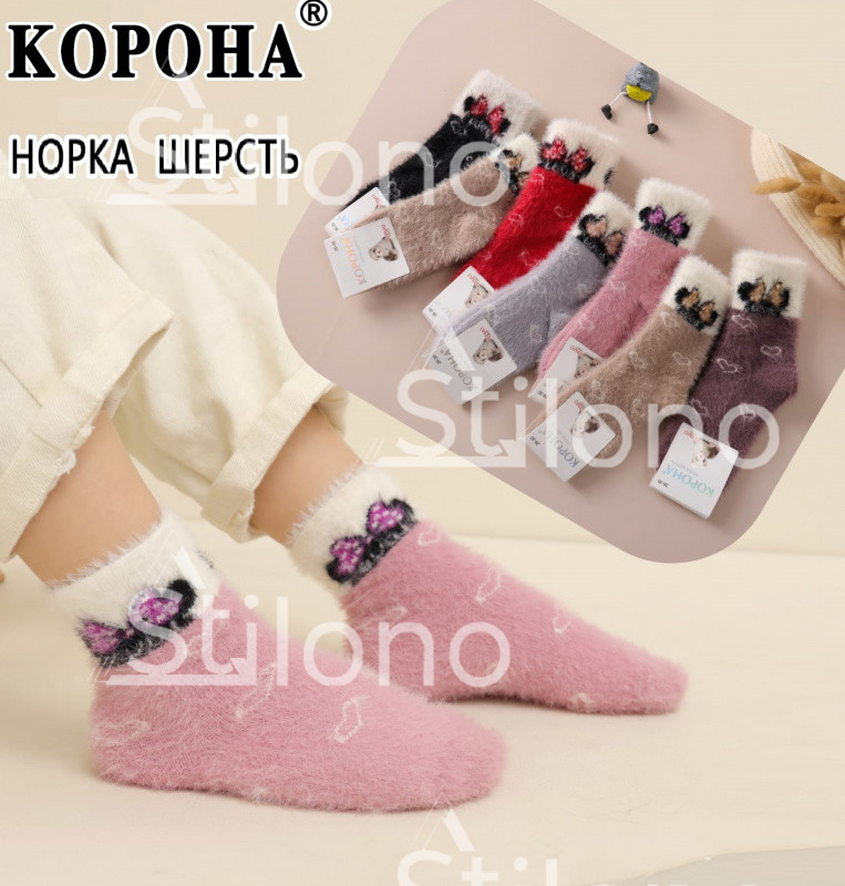 Носки женские теплые короткие из шерсти норки