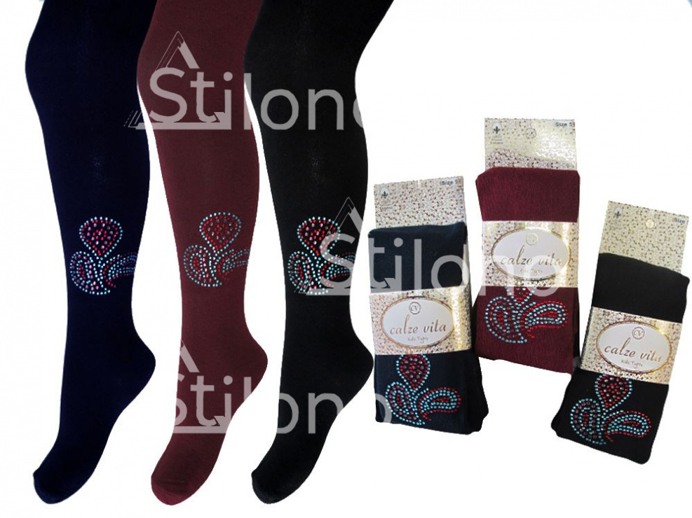 Колготки со стразами бренда CALZE VITA  - эффектный элемент девичьего гардероба. Стильные и красивые, они обеспечат ребенку комфорт во время носки. Изделия имеют хороший состав, не растягиваются, камни качественно зафиксированы и не теряются в процессе стирки. Резинка комфортная и эластичная. Модель представлена в широкой размерной линейке.
